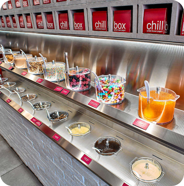 At chillbox, our mission is to make everybody happy! How? It’s easy! When in a chillbox store, you can create your own unique combination based on your mood, while selecting from a wide variety of choices. Are you ready to discover the flavors that will make your day and fill you with joy?